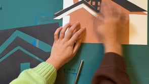 To start this project you need to first bundle up and go for a nice winter stroll! While on your walk, take note of your surroundings. What do the buildings, trees, and streets look like? Do they have snow on them? What color are they? If you are able to take a picture of your discoveries make sure to take a few snaps — if not, take a mental picture! When you return from your walk, take a few moments to reflect on all your eyes just saw. Choose one winter scene from your walk that you would like to re-create. Once you have settled on your image, grab a few colored sheets of construction paper that match the colors of the buildings, trees, cars, etc. that are in your winter scene. For example, my image is of my family’s brown home and the snowy backyard so I am going to grab some brown and white construction paper and a few different colors for smaller details in my scene (such as orange for the light above the door). If you took pictures on your walk this is a good time to take a look at those images. Now you’re ready to get to work! With some scissors, or an X-acto knife, carefully cut out the components to your winter scene (a house, tree, bird, street, etc.). With all your landmarks cut out, start to place them together onto a single piece of construction paper. This foundational piece should the color of your background. My winter scene takes place in the late afternoon so my foundational piece of construction paper is white. Now, with a glue stick, glue your cut out images onto your paper and… tada! Your winter scene is complete.